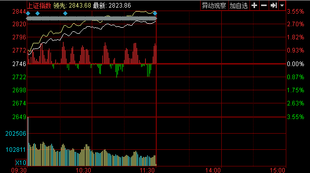午盤:滬指漲2.83%重回2800點(diǎn) 計(jì)算機(jī)券商漲幅居前