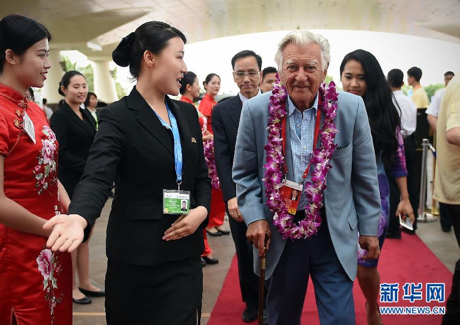 3月25日,參加2015年年會(huì)的澳大利亞前總理霍克抵達(dá)博鰲亞洲論壇大酒店。來(lái)自世界各地的政商代表陸續(xù)抵達(dá)海南博鰲,出席即將舉行的博鰲亞洲論壇2015年年會(huì)。 新華社記者 郭程 攝