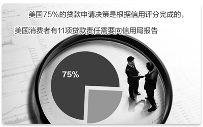 美國75%的貸款申請決策是根據(jù)信用評分完成的,美國消費者有11項貸款責任向信用局報告。影響個人信用記錄和評分的因素很多,如果支出或負債過度,信用卡透支,房子過大,汽車過多,收入較低,出現(xiàn)離婚、失業(yè)、喪失工作能力、經(jīng)營失敗、破產(chǎn)等情況,都會影響個人支付能力及信用記錄。