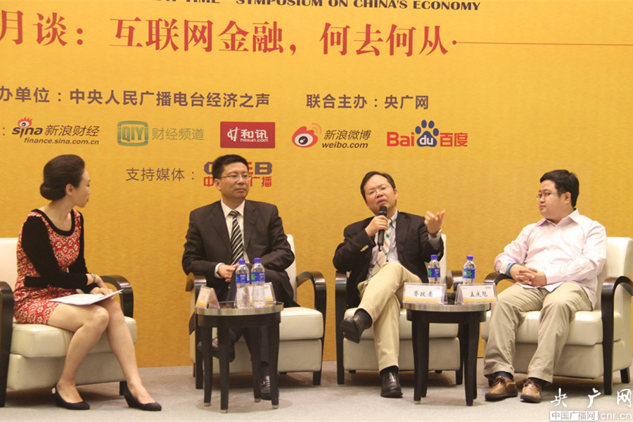 圓桌互動(dòng)討論,左起主持人留倩、易寶支付副總裁戴凱、興業(yè)銀行首席經(jīng)濟(jì)學(xué)家魯政委、百度金融中心負(fù)責(zé)人孟慶魁。(央廣網(wǎng) 王夢(mèng)妍/攝)