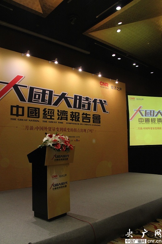 大家好!歡迎大家來到我們的《大國大時代——中國經濟報告會》二月談現(xiàn)場。我是中央人民廣播電臺主持人馮雅。既然是二月談,顧名思義,我們這個《大國大時代——中國經濟報告會》是每月一場,每場一個主題,我們這場的主題是:中國外貿量變到質變的拐點出現(xiàn)了嗎?