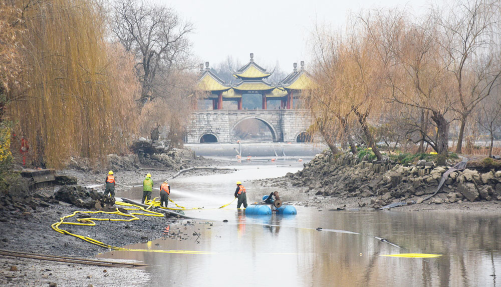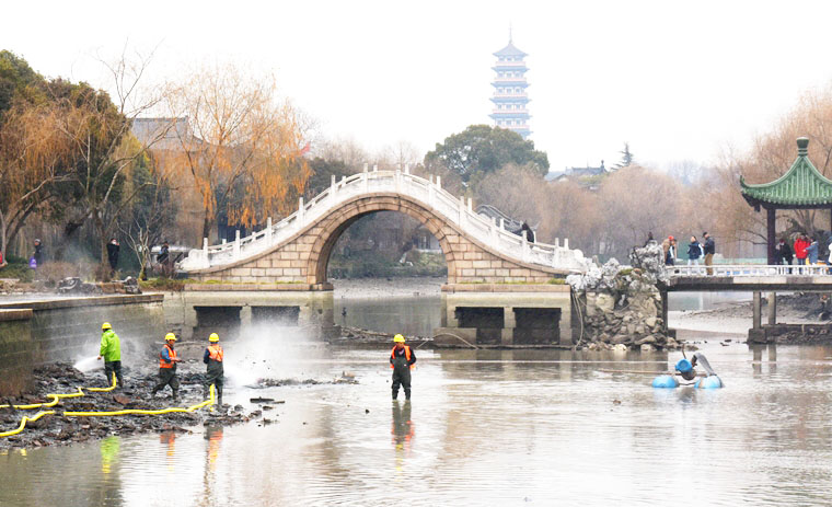 連日來,瘦西湖清淤工程正加緊進(jìn)行。昨天,瘦西湖湖底見天,全面投入污泥分離工作,確保春節(jié)前夕完工。季利 程曦 攝