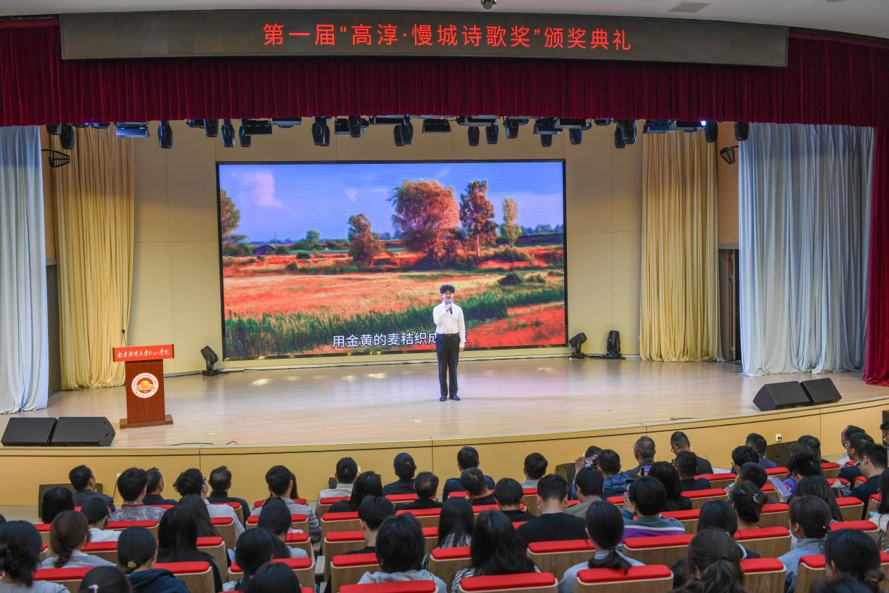 春和景明,詩風(fēng)浩蕩。4月19日,首屆“高淳·慢城詩歌獎”頒獎典禮在南京財經(jīng)大學(xué)紅山學(xué)院鹿鳴劇場舉行。高校師生、詩歌愛好者與各界嘉賓齊聚現(xiàn)場,以詩為媒,共赴青春與文化交融的文學(xué)盛宴。這場文化盛事,絕非一次單純的賽事頒獎,而是高淳以詩歌為紐帶,鏈接校園文化與地方文脈、激活青年創(chuàng)作活力、探索文化傳承新路徑的生動實踐。
