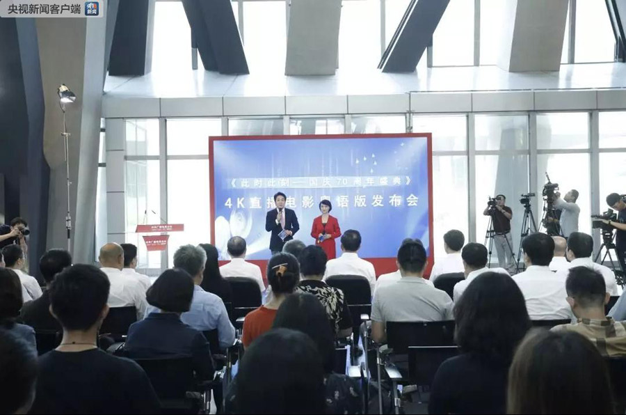 發(fā)布會(huì)上,中央廣播電視總臺(tái)央視副臺(tái)長(zhǎng)孫玉勝介紹了《此時(shí)此刻——國(guó)慶70周年盛典》4K直播電影進(jìn)院線及粵語(yǔ)版電影的情況。十月一日當(dāng)天的4K直播,畫(huà)質(zhì)音效一流,反響熱烈。此次粵語(yǔ)版盛典“大片”登陸粵港澳影院,將畫(huà)面、聲效、鏡頭語(yǔ)言和現(xiàn)場(chǎng)同期巧妙糅合,實(shí)現(xiàn)了全流程、全要素4K體驗(yàn)與5.1環(huán)繞聲結(jié)合運(yùn)用。中央廣播電視總臺(tái)大灣區(qū)之聲知名粵語(yǔ)主持人配以粵語(yǔ)解說(shuō)后,更方便了粵港澳地區(qū)的觀眾觀看。
