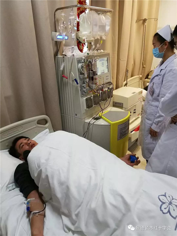 1月15日早上6點鐘,鐘元魁就起床了。在紅十字會工作人員陪同下,7點鐘采血并打完最后一次動員劑后,8點半左右造血干細(xì)胞采集工作正式開始。“躺在采集床上血液順著管道,從左臂流出,經(jīng)過血細(xì)胞分離機,分離出造血干細(xì)胞后又輸回右手!辩娫f,整個采集過程用了4個多小時,除了時間較長,血液循環(huán)量較多之外,其它感覺就跟采集血小板一樣。整個捐獻(xiàn)過程,市紅十字會工作人員一直陪伴在他身邊,使他感到十分溫暖。