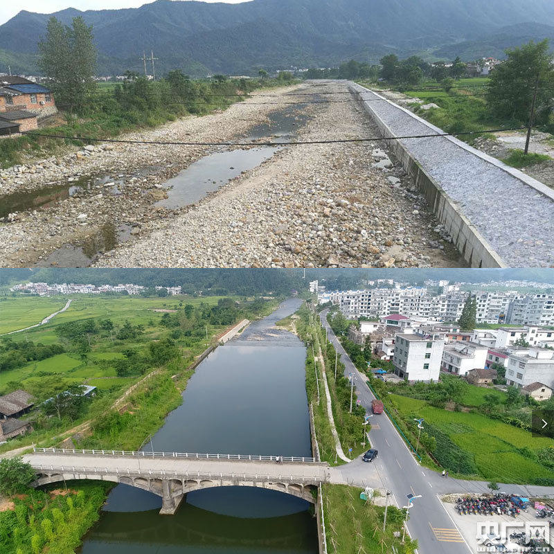 打擊非法采砂前、后河道狀況對比圖(央廣網(wǎng)發(fā) 通訊員供圖)