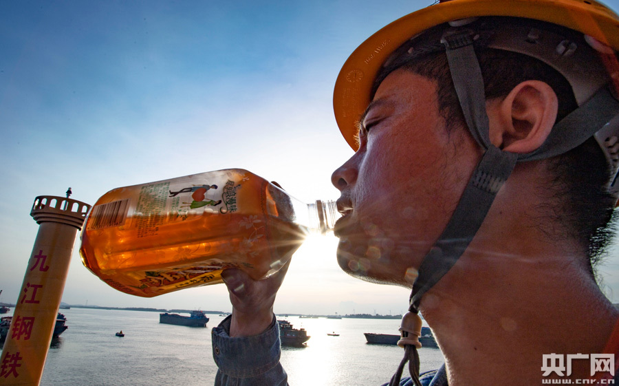 正值中伏天,7月30日下午5時(shí)許的太陽依然似火、熱氣逼人,面對驕陽,一天要起吊500余噸廢料、渴得嗓子直冒煙的梅佛良,拿起一瓶飲料,咽喉不起波瀾就直接入胃。
