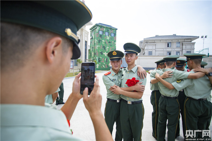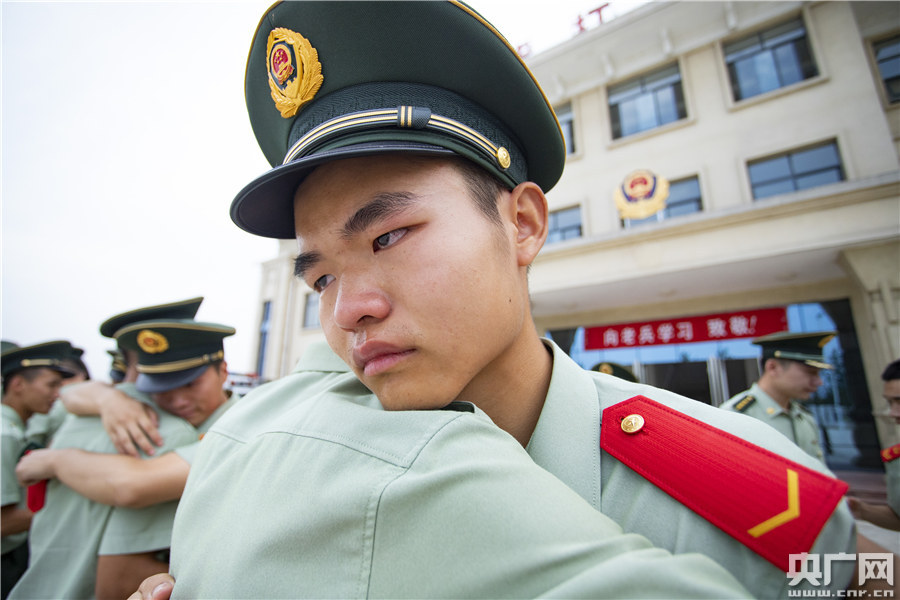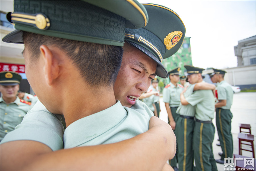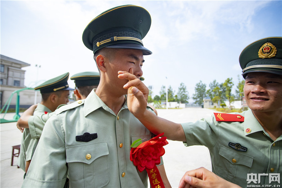 央廣網(wǎng)湖口9月2日消息(記者李竟成 通訊員張玉 吳寶冰)“送戰(zhàn)友,踏征程,默默無(wú)語(yǔ)兩眼淚,耳邊響起駝鈴聲……”8月31日,武警湖口中隊(duì)隨著《駝鈴》歌聲的響起,6名光榮退伍的武警官兵哭得像個(gè)孩子,因?yàn)榻裉焖麄兗磳⒏鎰e生活多年的軍營(yíng),告別在一起朝夕相處多年的兄弟,內(nèi)心深處有太多的不舍……