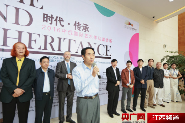 央廣網(wǎng)南昌10月1日消息(胡斐)金秋十月慶盛事,碩果飄香迎佳節(jié)。10月1日上午九點(diǎn),由江西省文化廳、江西師范大學(xué)、俄羅斯國(guó)立師范大學(xué)主辦,江西省美術(shù)館、江西師范大學(xué)美術(shù)學(xué)院、俄羅斯國(guó)立師范大學(xué)造型藝術(shù)系承辦的“時(shí)代·傳承—2016中俄國(guó)際藝術(shù)作品邀請(qǐng)展”在江西省美術(shù)館隆重開幕。江西省文化廳黨組書記、廳長(zhǎng)池紅,江西師范大學(xué)黨委書記田延光,江西師范大學(xué)校長(zhǎng)梅國(guó)平,俄羅斯國(guó)立師范大學(xué)副校長(zhǎng)、美術(shù)學(xué)院院長(zhǎng)庫(kù)茲米喬夫,俄羅斯圣彼得堡美術(shù)家協(xié)會(huì)常務(wù)副主席、美術(shù)館館長(zhǎng)薩依科夫,中國(guó)美協(xié)理論委員會(huì)副主任王仲,中共黨史學(xué)會(huì)藝術(shù)專委會(huì)副會(huì)長(zhǎng)王鐵牛,北京師范大學(xué)藝術(shù)與傳媒學(xué)院美術(shù)與設(shè)計(jì)系主任古棕,青島當(dāng)代水彩藝研院執(zhí)行院長(zhǎng)竇鳳至,中央美術(shù)學(xué)院美術(shù)館學(xué)術(shù)部主任王春辰,江西省文化廳藝術(shù)處處長(zhǎng)楊丁,江西省美協(xié)主席、江西省畫院院長(zhǎng)楊金星,江西省美協(xié)副主席、南昌市美協(xié)主席王向陽(yáng),南昌大學(xué)藝術(shù)與設(shè)計(jì)學(xué)院美術(shù)系主任羅堅(jiān),江西師范大學(xué)美術(shù)學(xué)院教授馬志明,江西師范大學(xué)美術(shù)學(xué)院國(guó)際教育中心主任廖正定等相關(guān)領(lǐng)導(dǎo)、學(xué)者、藝術(shù)家、觀眾、新聞媒體記者近千人參加開幕式。
