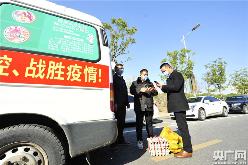 央廣網(wǎng)南昌2月19日消息(記者鄧玉玲 通訊員李慳)“這個是100枚鴨蛋,還有送的10斤蔬菜,都是新鮮的!如果覺得好,可以幫忙推薦推薦,我們送貨上門”2月18日,在南昌縣縣城蓮塘各個小區(qū)門口,南新鄉(xiāng)九聯(lián)村駐村第一書記應(yīng)文偉開著他的“防疫宣傳車”干起了快遞送貨的業(yè)務(wù)。