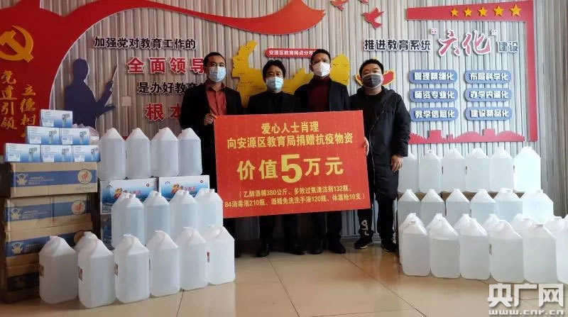 肖理向安源區(qū)教育局捐贈防疫物資