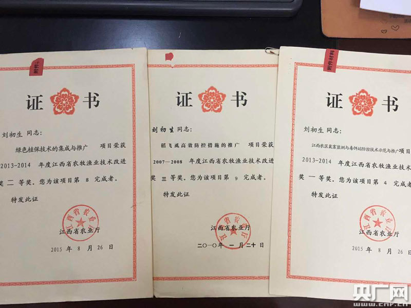 2005年6月是劉初生人生里的磨難之年,他被確認(rèn)患上了舌癌。當(dāng)年兒子正值高考,劉初生作為家中頂梁柱身罹絕癥幾乎要壓垮這個(gè)家。經(jīng)過成功的手術(shù)和放療化療,劉初生憑著樂觀的天性和頑強(qiáng)的意志,命運(yùn)眷顧他讓他從死亡線上掙脫開來。半年后稍一康復(fù),他沒向組織提出換個(gè)輕松崗位調(diào)養(yǎng)身子,照顧家庭,而是更加珍惜生命的第二春,全身心地投入植保植檢工作中,讓生命綻放芳華。劉初生與人合作完成的“稻飛虱高效防控措施的推廣”“江西農(nóng)區(qū)鼠害監(jiān)測(cè)與毒餌站防控技術(shù)示范與推廣”“綠色植保技術(shù)的集成與推廣”等項(xiàng)目分別榮獲江西省農(nóng)牧漁業(yè)技術(shù)改進(jìn)獎(jiǎng)。2013年12月,國(guó)家農(nóng)業(yè)部授予他2011—2013年度全國(guó)農(nóng)牧漁業(yè)科技貢獻(xiàn)獎(jiǎng)。他收獲了縣級(jí)以上榮譽(yù)30余項(xiàng),僅全國(guó)性農(nóng)業(yè)技術(shù)推廣先進(jìn)個(gè)人榮譽(yù)就有5次。正是憑著一連串的令人信服的佳績(jī),他這個(gè)只有中專文憑的基層農(nóng)業(yè)技術(shù)人員,一路綠燈破格晉升為農(nóng)業(yè)技術(shù)推廣研究員。2014年,劉初生爭(zhēng)取上級(jí)農(nóng)業(yè)部門支持300余萬元,建設(shè)都昌縣植保植檢區(qū)域站大樓和都昌縣農(nóng)業(yè)有害生物預(yù)警與控制區(qū)域站觀測(cè)場(chǎng)。劉初生為了用好這筆?罡纳浦脖;A(chǔ)設(shè)施,他不辭辛苦,精打細(xì)算,比自家建房子還要用心十分。觀測(cè)場(chǎng)建成后,他每天都要抽出半天到觀測(cè)間工作,記錄原始數(shù)據(jù),發(fā)布準(zhǔn)確信息,雙休日也不例外。2015年“七一”期間,江西植保植檢系統(tǒng)在全省開展“實(shí)干興贛當(dāng)先鋒,植保系統(tǒng)在行動(dòng)”主題巡回宣講報(bào)告會(huì),劉初生是全省三名報(bào)告團(tuán)成員之一,他的先進(jìn)事跡傳遍贛鄱大地。