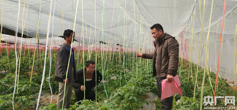 鐘月新在蔬菜大棚內(nèi)向農(nóng)戶宣傳產(chǎn)業(yè)扶貧政策(央廣網(wǎng)發(fā) 通訊員 供圖)