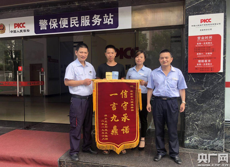 央廣網(wǎng)南昌6月26日消息(記者王一凡 通訊員袁小斌)6月26日上午,客戶劉先生手舉一面寫著“信守承諾,一言九鼎”的錦旗大步走進(jìn)了人保財(cái)險(xiǎn)吉安市分公司,專程來(lái)感謝該公司提供的優(yōu)質(zhì)高效理賠服務(wù)。