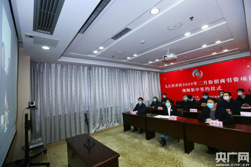 央廣網(wǎng)九江2月22日消息(記者胡斐 通訊員梅。皻g迎各位企業(yè)家選擇落戶(hù)九江經(jīng)開(kāi)區(qū),今天我們?cè)谔厥獾臅r(shí)期,用特殊的方式,把項(xiàng)目定下來(lái)。”2月21日10時(shí)18分,九江經(jīng)開(kāi)區(qū)舉辦招商引資項(xiàng)目視頻集中簽約儀式,總投資10.5億元的熙澤5G共享科創(chuàng)城等4個(gè)項(xiàng)目方代表與該區(qū)進(jìn)行了視頻簽約。