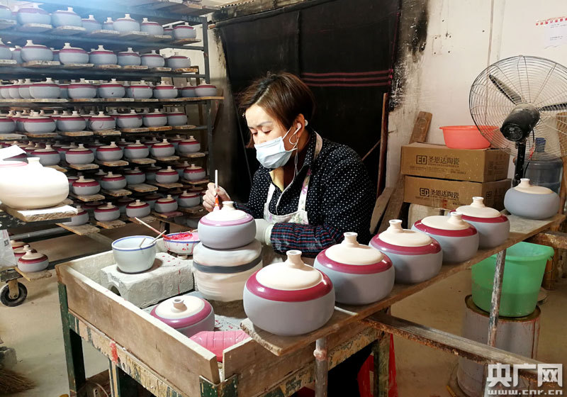 景德鎮(zhèn)恩達(dá)陶瓷有限公司工人忙著給陶瓷酒瓶繪畫(央廣網(wǎng)發(fā) 通訊員程萬海/攝)