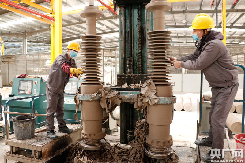 工人們正在緊張生產(chǎn)出口到“一帶一路”沿線國家的棒型支柱絕緣子產(chǎn)品