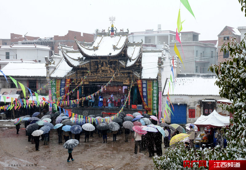 20年前,兩人覺得樂平古戲臺(tái)的獨(dú)特魅力不應(yīng)該只讓本地人知曉,應(yīng)該對外宣傳,于是就開始拍攝樂平的古戲臺(tái),并向外宣傳。那個(gè)時(shí)候,只要樂平哪里做戲,他們就趕往哪里拍攝。2005年冬天的一天,天正下著大雪,胡木水和徐天澤聽聞樂港張家橋做戲,立馬騎著自行車,頂風(fēng)冒雪前往10多里外的袁家村,并拍下正在雪中唱戲的古戲臺(tái)這一難得的景觀。