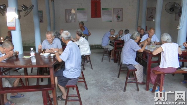 廣豐區(qū)東陽鄉(xiāng)清淤村老人管紀林:兩個老年(人)在家里又要燒火,還要搞菜什么的,多麻煩啊,我們大家一起在這個地方吃,吃了在這邊玩一下,多舒服啊,你看我們這些老年伴,談話(聊天)又方便。