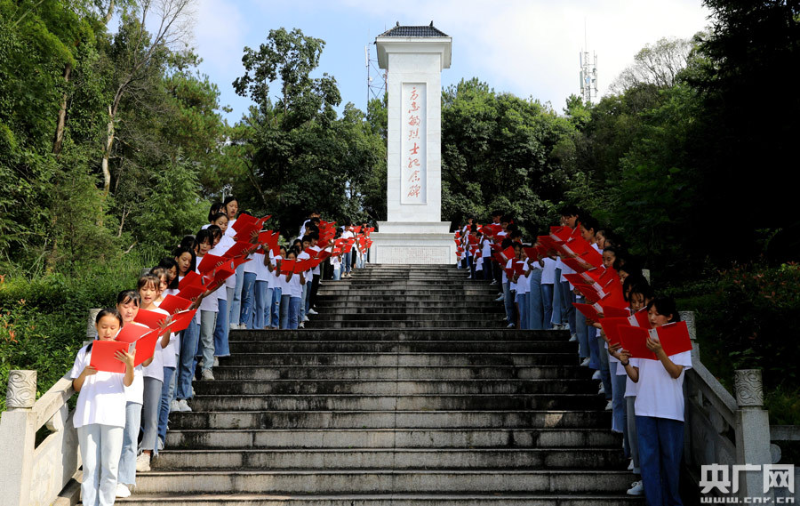 84年前,方志敏在獄中寫(xiě)下《可愛(ài)的中國(guó)》一文,激勵(lì)著一代又一代的中華兒女。今天,在莊嚴(yán)的革命烈士紀(jì)念碑前,百名樂(lè)平學(xué)生以飽滿的熱情齊聲朗誦《可愛(ài)的中國(guó)》,語(yǔ)調(diào)鏗鏘有力,誦讀飽含深情。