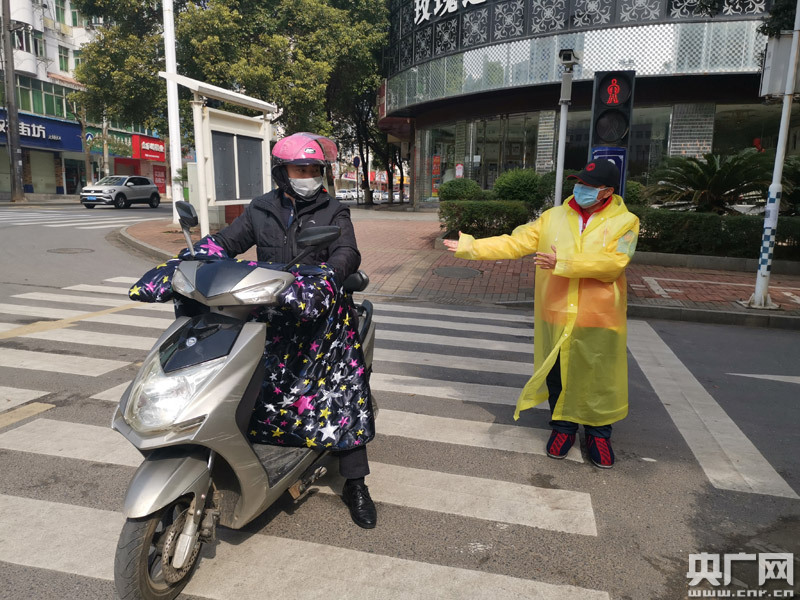 央廣網(wǎng)吉安2月9日消息(記者胡斐 通訊員殷姿、胡穎)“我不出門我驕傲、我為祖國省口罩”、“出門戴口罩,全國人民都知道,上過電視登過報(bào)”、“疫情是魔鬼,好好愛自己”……這十幾天,在吉安縣最繁華的鳳凰路與廬陵大道交叉路口,總有一道身影,穿著一件黃色雨衣、戴著一個(gè)綠色口罩,風(fēng)雨無阻,或是念著一段段瑯瑯上口的順口溜,或是一遍遍苦口婆心地勸誡行人佩戴口罩、不要出門。