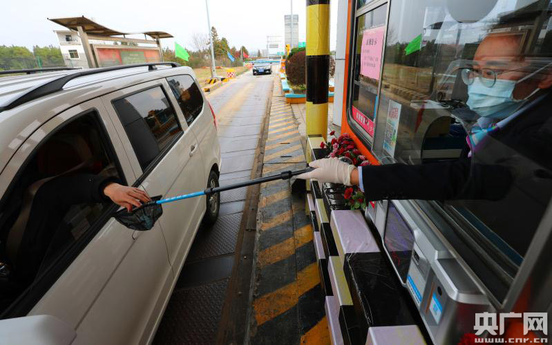 2月9日,在江西省吉安市泰和縣泉南高速公路泰和北收費站,收費員正在使用一件小“神器”進行收費操作。面對新冠肺炎疫情,江西省高速集團吉安管理中心泰和北收費站“發(fā)明”了一件收費小“神器”,一個小網(wǎng)袋,固定在一根竿子上,方便在收費崗亭與繳費司機之間遞來遞去,司機把卡和現(xiàn)金放在網(wǎng)袋里,完成收費找零,實現(xiàn)了收費員與司乘人員的零接觸,阻斷疫情傳播。