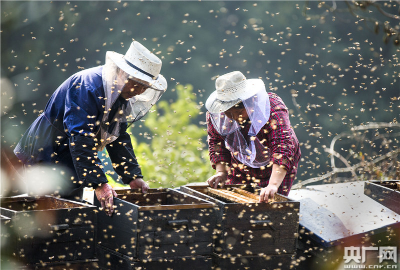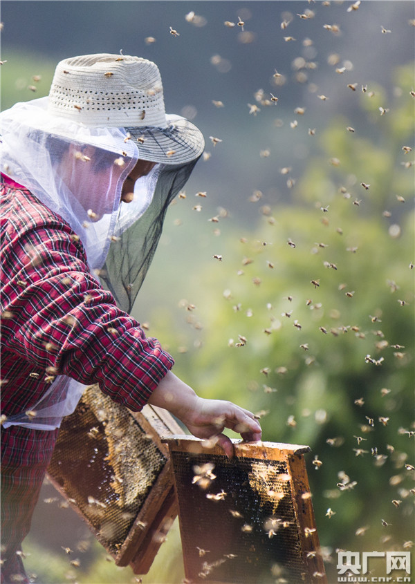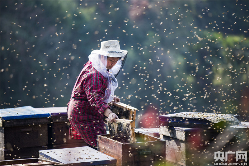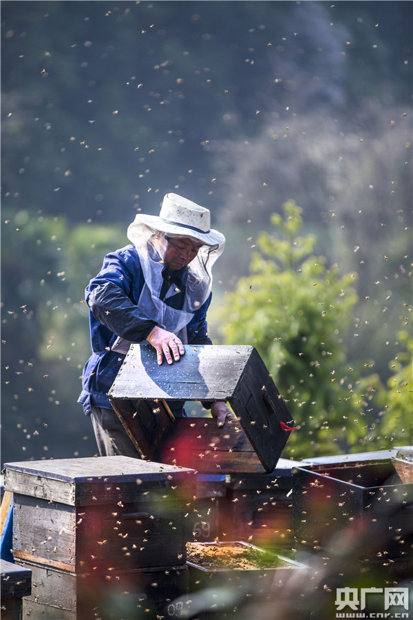 央廣網(wǎng)都昌3月6日消息(記者胡嘯 通訊員傅建斌)3月5日,在江西省九江市都昌縣汪墩鄉(xiāng)白果村,蜂農(nóng)在檢查蜂箱狀況。 驚蟄時節(jié),隨著天氣逐漸變暖,位于江西省北部的都昌縣各地的油菜花次第綻放,養(yǎng)蜂人忙著放蜂采蜜,醞釀著甜蜜的生活。