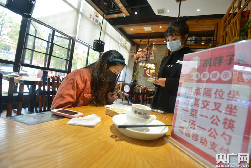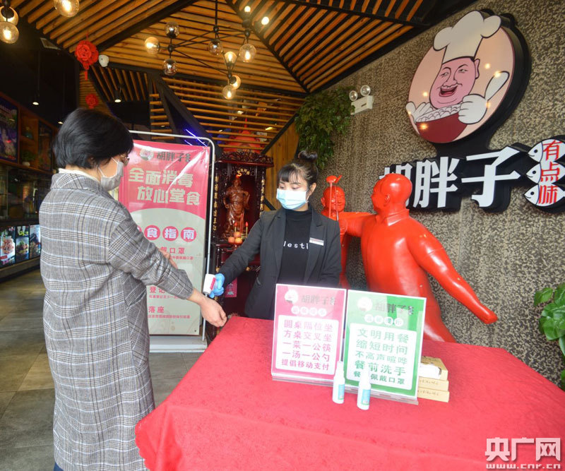 顧客入門(mén)量體溫、就坐登記基本信息(央廣網(wǎng)發(fā) 通訊員李軍/攝)