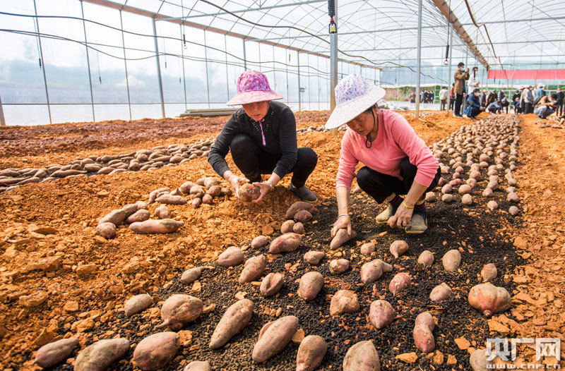 3月20日,江西省九江市都昌縣南峰鎮(zhèn)白水村村民在紅薯種植基地勞作