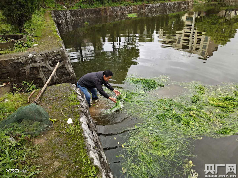 央廣網(wǎng)萍鄉(xiāng)3月31日消息(記者王一凡 通訊員劉偉南 彭鈺)一大早,江西安源區(qū)后埠村貧困戶廖柏萍已經(jīng)打滿了兩筐綠油油的魚(yú)草,準(zhǔn)備投到魚(yú)塘去。
