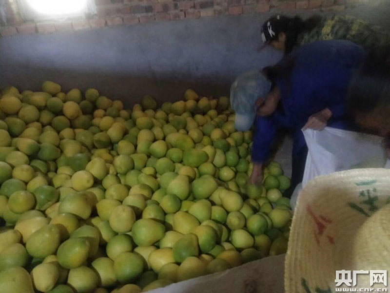 王圣瑞和工人一起給顧客運(yùn)送金蘭柚