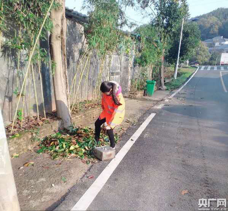 李彩艷在長潭村彭家壩路段清掃