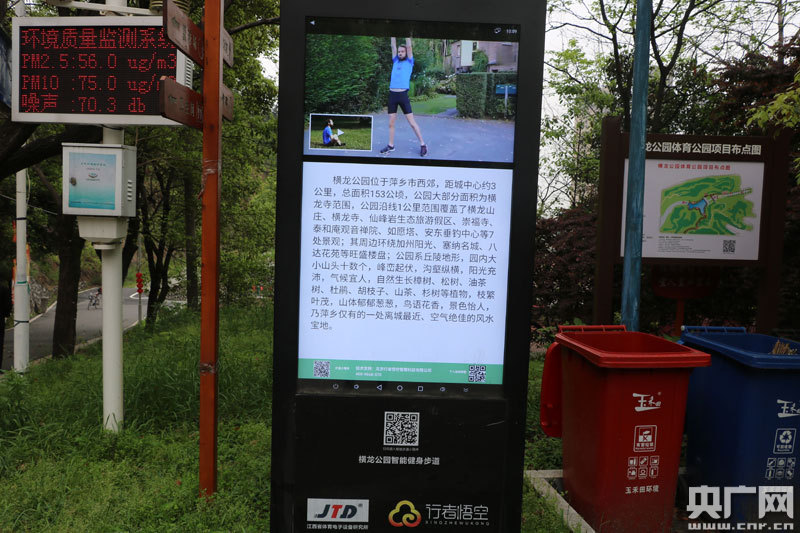 央廣網(wǎng)萍鄉(xiāng)4月10日消息(記者王一凡 通訊員劉偉南 彭鈺)一大早,家住安源區(qū)長興館村的周大爺樂呵呵的出門了,“橫龍公園離我家比較近,環(huán)境也好,現(xiàn)在天氣越來越暖和,我終于能出來老友們一起聊聊天,打打拳、跑跑步鍛煉一下了。”周大爺是老年人的“群主”,每天帶著一群“老朋友”在橫龍智慧體育公園健身鍛煉。市民小蘭在游步道入口,拿出手機(jī)掃描二維碼注冊,大電子屏將顯示運(yùn)動參數(shù)和排名,“有了這個智能系統(tǒng),我就能知道自己走了多少步,消耗了多少熱量,還能看到自己的排名,激勵了我運(yùn)動的斗志”。
