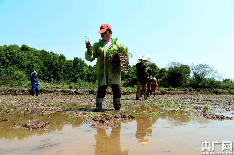 近日,在江西省吉安市吉州區(qū)興橋鎮(zhèn)釣源村,農(nóng)民搶抓農(nóng)時正在田間拋秧。吉州區(qū)在做好疫情防控的前提下,積極開展春季農(nóng)業(yè)生產(chǎn),引導(dǎo)農(nóng)民不誤農(nóng)時播種早稻,實時推送汛期情況,確保今年夏糧增產(chǎn)增收,穩(wěn)固脫貧攻堅成果,決勝奔小康。