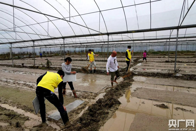 社逕鄉(xiāng)黨員志愿者幫助村民撒種、鋪設(shè)育秧(央廣網(wǎng)發(fā) 通訊員鐘鑫)