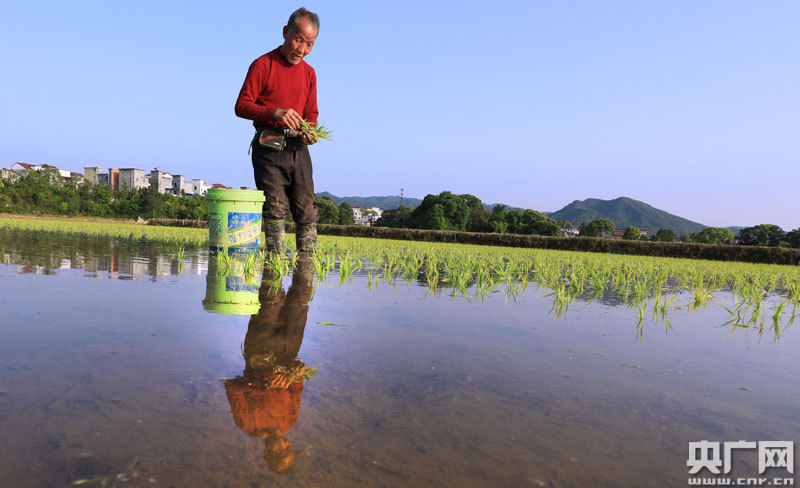 連日來,江西省吉安市泰和縣廣大農(nóng)民在做好疫情防控的前提下,趁著晴好天氣,搶抓農(nóng)時(shí)栽插早稻,為實(shí)現(xiàn)夏糧豐產(chǎn)豐收打好基礎(chǔ)。(央廣網(wǎng)發(fā) 通訊員司馬天民 羅愛群攝)