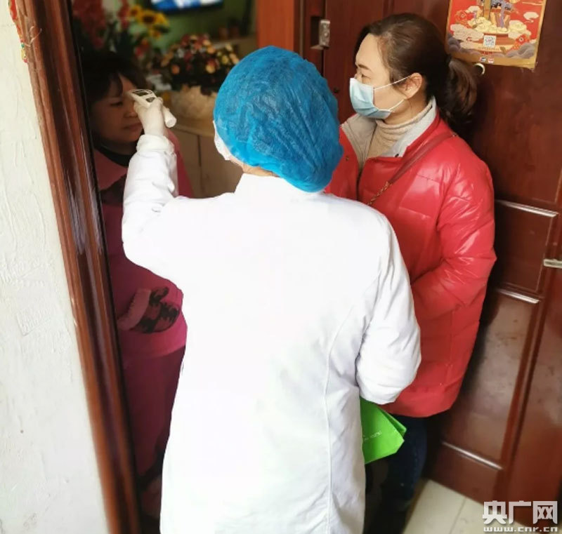 抗“疫”戰(zhàn)士陳妍上戶測(cè)體溫