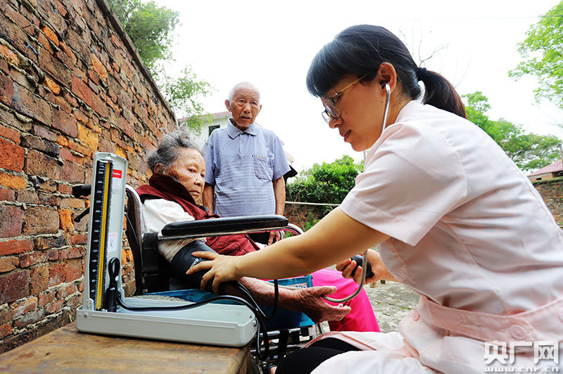 江西省吉安市安?h平都衛(wèi)生院家庭醫(yī)生在給太源村殘疾人羅晚云體檢(央廣網(wǎng)發(fā) 通訊員劉麗強(qiáng) 攝)