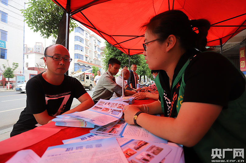 江西省吉安市安?h殘聯(lián)工作人員在向殘疾人推薦就業(yè)崗位(央廣網(wǎng)發(fā) 通訊員劉麗強(qiáng) 攝)