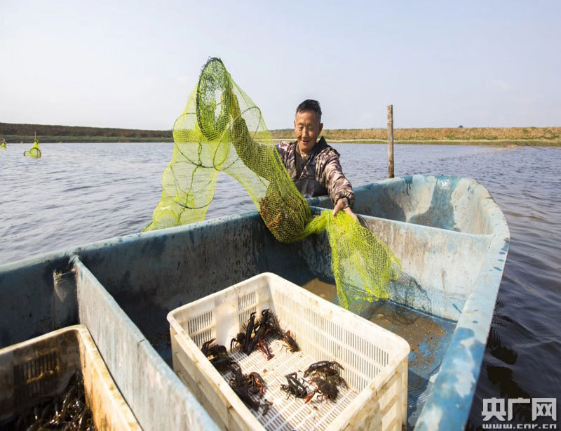 養(yǎng)殖戶捕撈小龍蝦