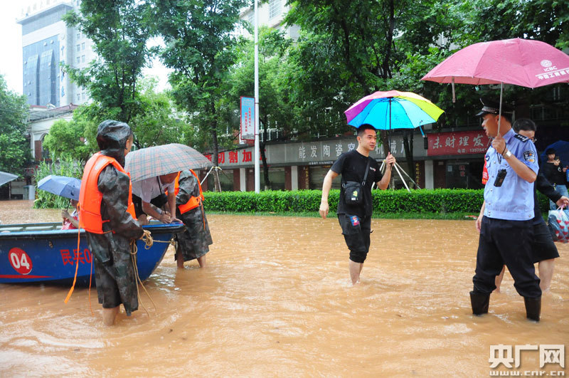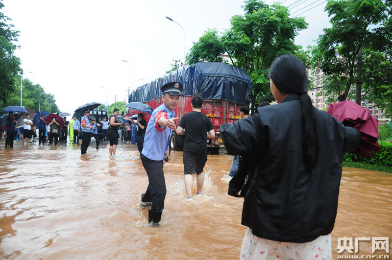同一時間,接景德鎮(zhèn)昌江一中考務(wù)辦求助,景德鎮(zhèn)市公安局城警支隊前往古城路和瓷都大道交界點接力防汛沖鋒舟,利用警車涉水分批將30余名被困錦繡天成小區(qū)考生送至昌江一中考點,最后一名考生于9點14分趕到考場。