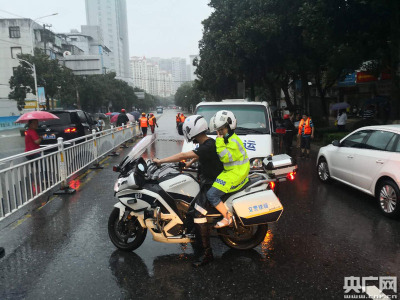 景德鎮(zhèn)市公安局交警支隊鐵騎隊于6點50分等候在昌南大道路口,準備押送高考試卷前往景德鎮(zhèn)四個考點,以確保萬無一失。就在最后一輛鐵騎準備出發(fā)前往二中考點時,路邊一名獨自撐傘的女生奔向鐵騎隊員,向他請求幫助。原來她是今年參加高考的考生,由于當時所處瓷都大道地段水淹,公交車改線,一時不知道怎么去考場。當即,鐵騎隊員當即脫下了雨衣披在考生身上。隨即,鐵騎隊搭載這名考生,一路護送著高考考卷,順利抵達二中考點。