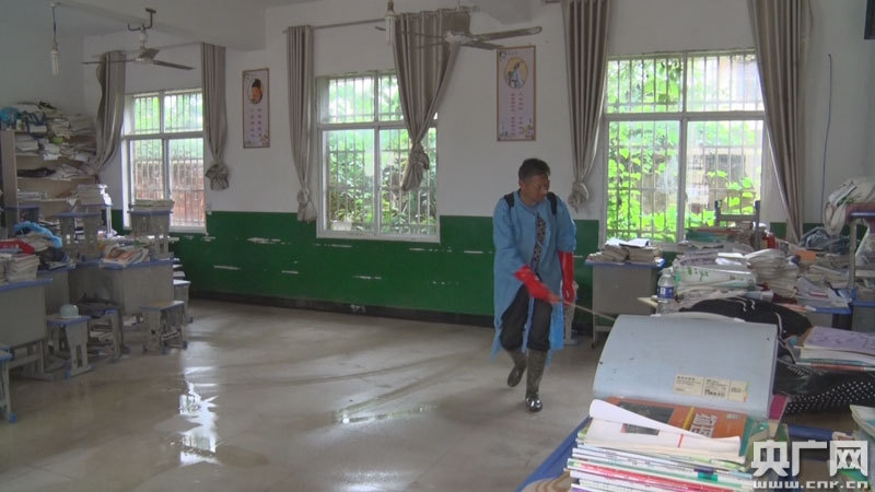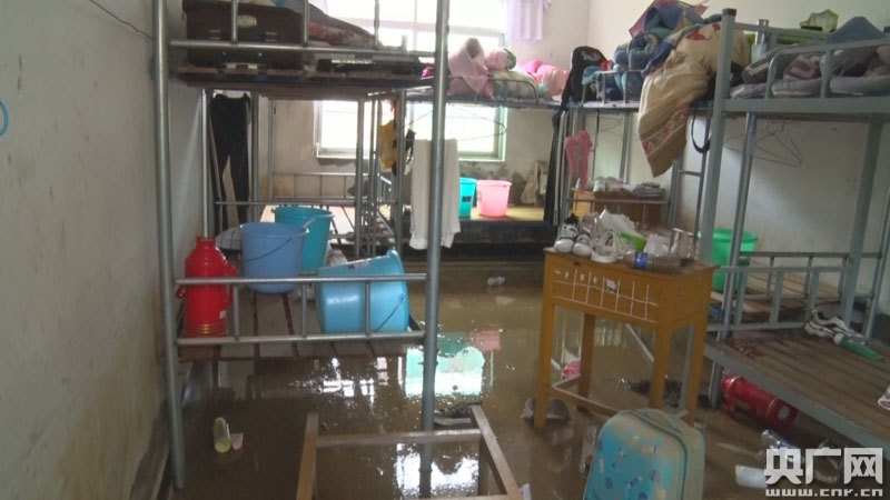 7月8日,山洪過后的鹽田中學,學生宿舍一片狼藉(央廣網(wǎng)發(fā) 通訊員余齊民 攝)