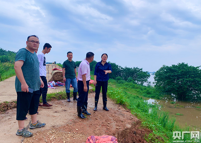 區(qū)委書記李虹到袁河堤壩滑坡現(xiàn)場督導(dǎo)指揮防汛工作