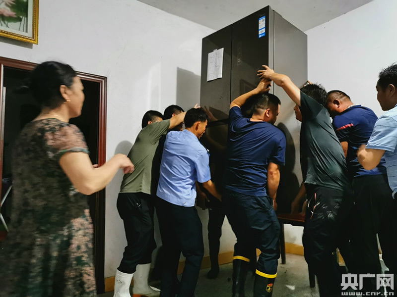 夜里8時(shí)30分,第一批“黨員突擊隊(duì)”抵達(dá)村莊,積水最深處已沒過小腿,部分村民家中一樓進(jìn)水,而界水江的江水還在以肉眼可見的速度緩緩漫過農(nóng)田,涌入村里。村民 李祝花獨(dú)居在家,丈夫孩子不在身邊,房子又毗鄰水塘。去年水災(zāi),淹壞了她家里的電冰箱、電視機(jī),今年洪水又進(jìn)了屋子,眼見新買的電器要再次遭殃,她急的直跳腳!按蠼銊e急,你先到二樓待著,不要再淌水出門了,注意安全,電器農(nóng)資我們幫你轉(zhuǎn)移!秉h員突擊隊(duì)的隊(duì)長,鄉(xiāng)黨委書記曾榮華好言寬慰道,隨即同幾名年輕力壯的鄉(xiāng)干部一起用“土辦法”,將八仙桌、板凳搭起簡易平臺(tái),把冰箱穩(wěn)穩(wěn)地抬離水面。大家七手八腳地拆下電視、又將一袋一袋的稻米、化肥搬到二樓的房間。“七十多歲的劉揚(yáng)新老人一個(gè)人住在地下室里,水灌到他家,出不來了!”接到村民求助,突擊隊(duì)立即涉水趕往現(xiàn)場。因?yàn)楸┯,村莊里的照明條件很差,積水下還暗藏著溝渠、籬笆等障礙,步履維艱,稍有不慎便會(huì)踏空摔倒。突擊隊(duì)把手電聚成一束,集中前導(dǎo)照明。一人手持竹蒿探路,眾人亦步亦趨,終于來到劉揚(yáng)新老人家門口。鄉(xiāng)綜治辦專職副主任歐陽騄身材高大,主動(dòng)請纓淌水下到地下室內(nèi),將老人帶出,安置在較為安全的村民家中。