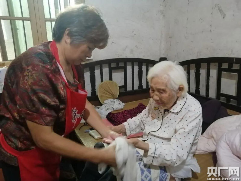 原來今年68歲的吳信華有兄弟三人,他在家中排行老二。婆婆97歲的周仙蘭由于年歲高有點(diǎn)老年癡呆,糊涂時(shí)連身邊的親人都不認(rèn)識(shí)。從前是由三兄弟每月輪流照顧,老大與老三住在余江縣城,吳信華一個(gè)人住在錦江。2012年婆婆周仙蘭突發(fā)中風(fēng),導(dǎo)致半邊身子不能動(dòng)彈,完全失去自理能力。輪到老大老三照顧時(shí),也許是工作原因,他們將老人送往福利院。