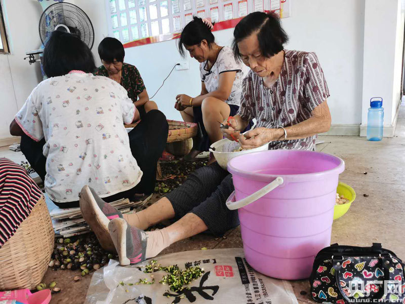 參與這項工作的村民,多數(shù)是村里的留守老人和婦女。今年村里的荷塘迎來豐收,蓮子采摘、加工需要勞動力,不少村民看上了這個增加收入的機(jī)會。“剝一斤蓮子可以賺兩塊錢,活又不累,比在家閑坐強(qiáng)多了。”趙雪玉嫻熟地剪開一顆蓮子,把中間翠綠色的蓮芯取下來。她對務(wù)工所得表示很滿意。