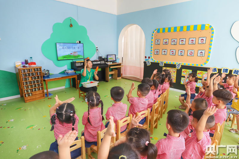 9月1日,彭澤縣中心幼兒園在開學(xué)第一課上開展節(jié)約糧食活動(央廣網(wǎng)發(fā) 通訊員袁昕 攝)