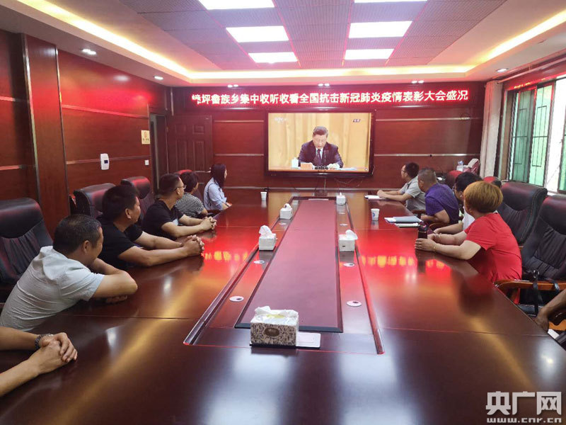 貴溪市樟坪畬族鄉(xiāng)干部收聽(tīng)收看表彰會(huì)(央廣網(wǎng)發(fā) 通訊員供圖)