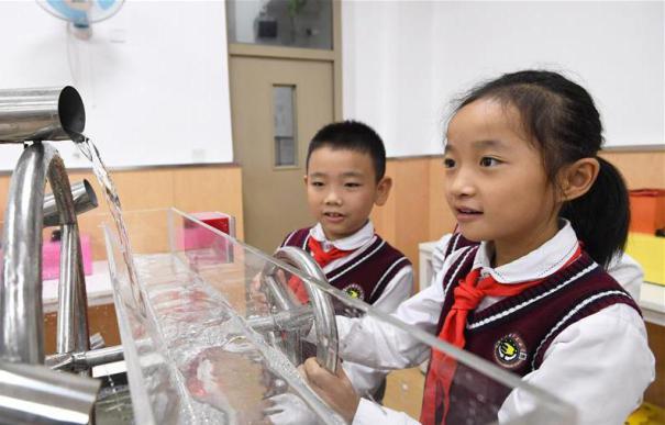 學(xué)生正在體驗(yàn)科普展品